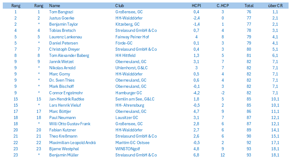 | 30 | Haaße, Alexander | Wentorf-Reinbeker GC | 1,9 | 5 | 83 | 85 | 168 | +18,2 |