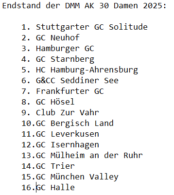 GVSH Mannschaftspokal AK 30 Damen 2025