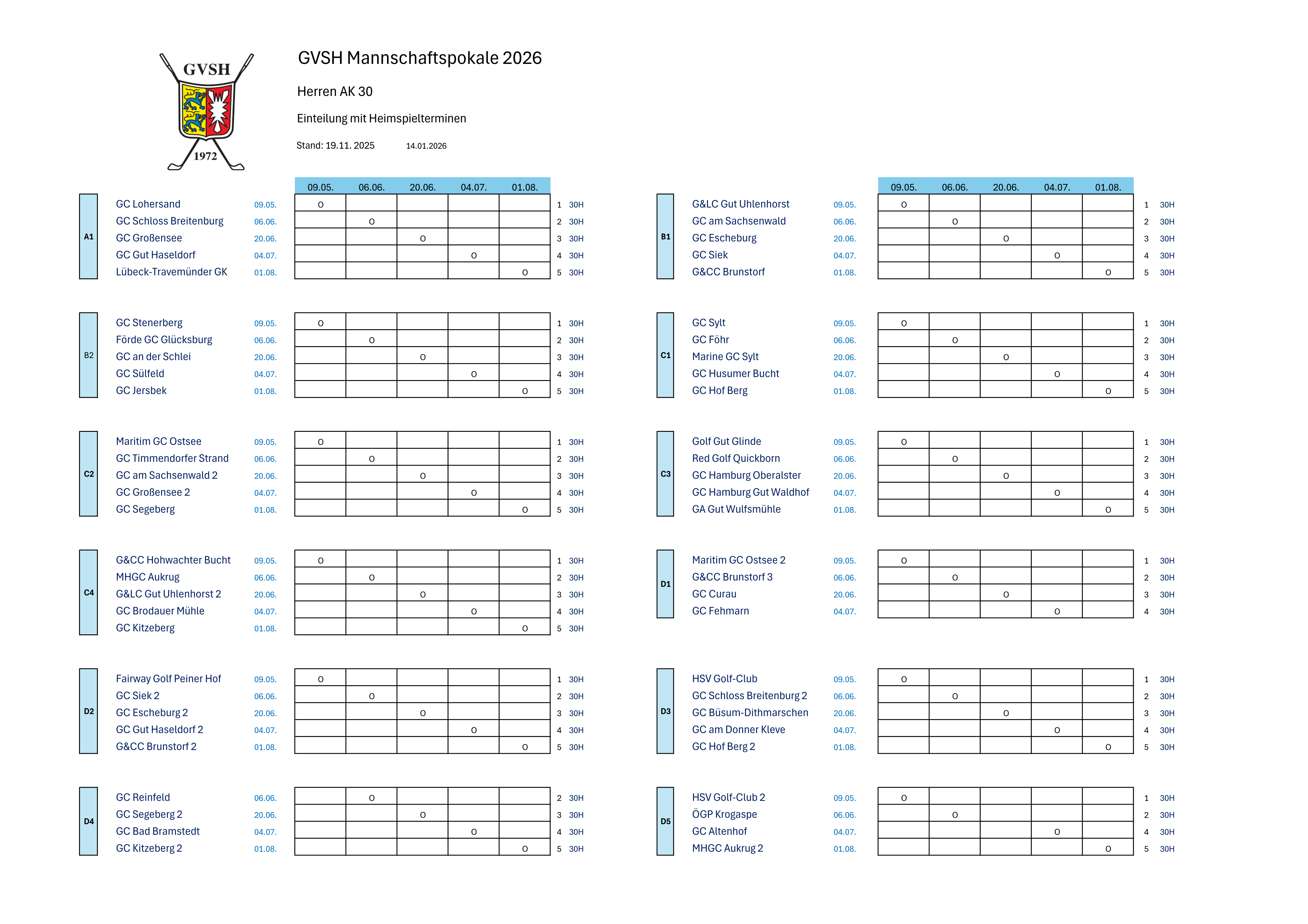 GVSH Mannschaftspokal AK 30 Herren 2026