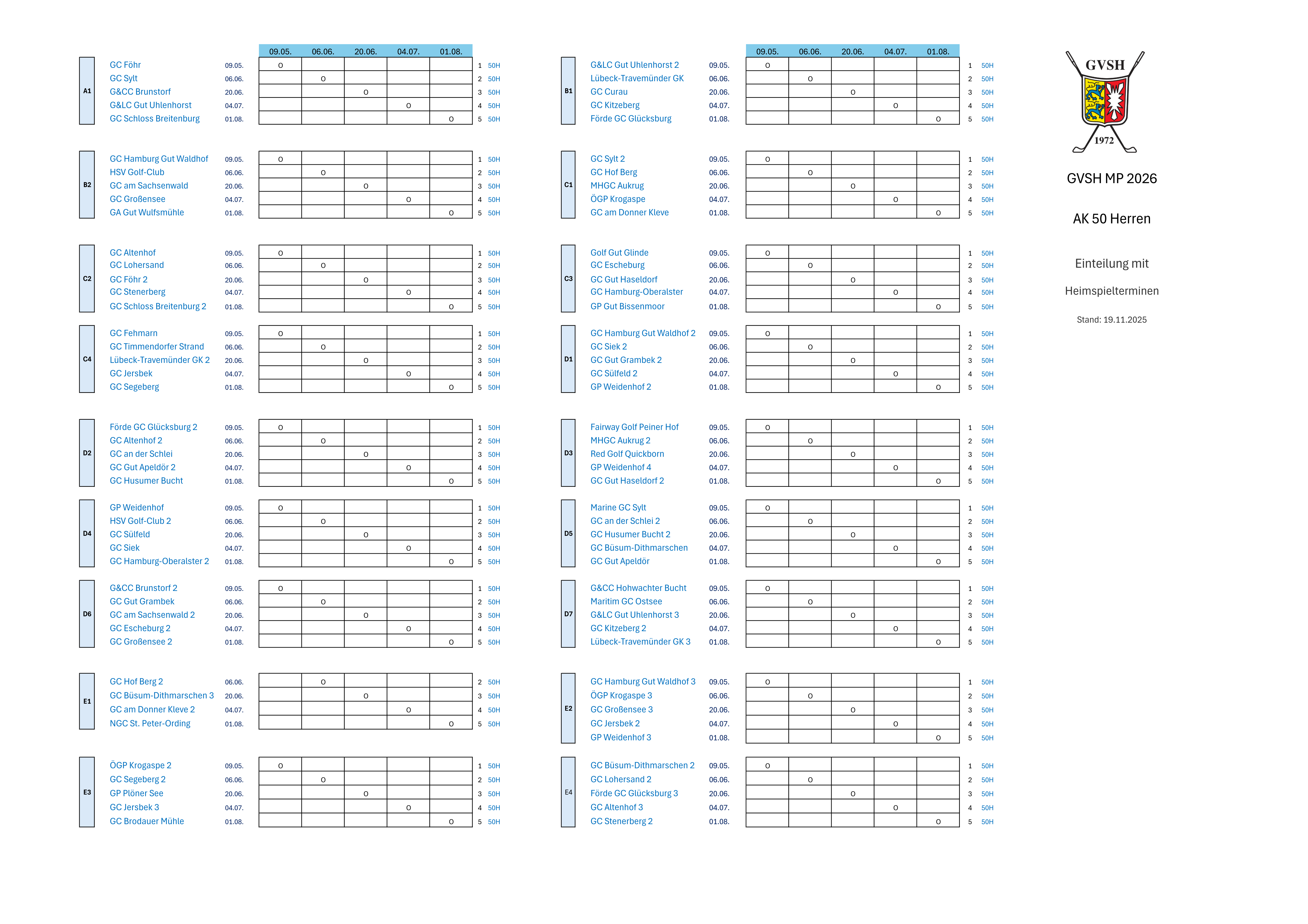 GVSH Mannschaftspokal AK 50 Herren 2026