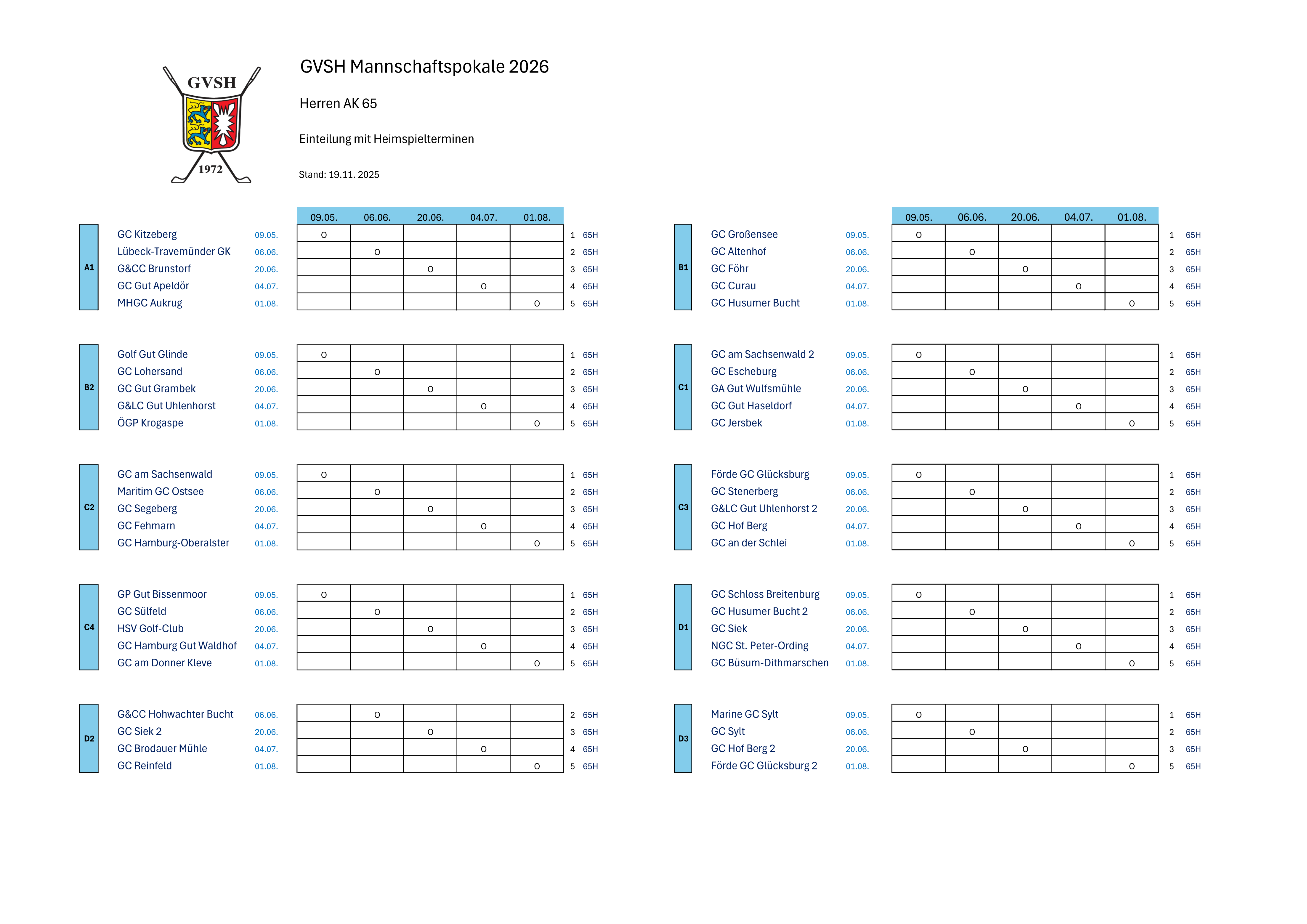 GVSH Mannschaftspokal AK 65 Herren 2026