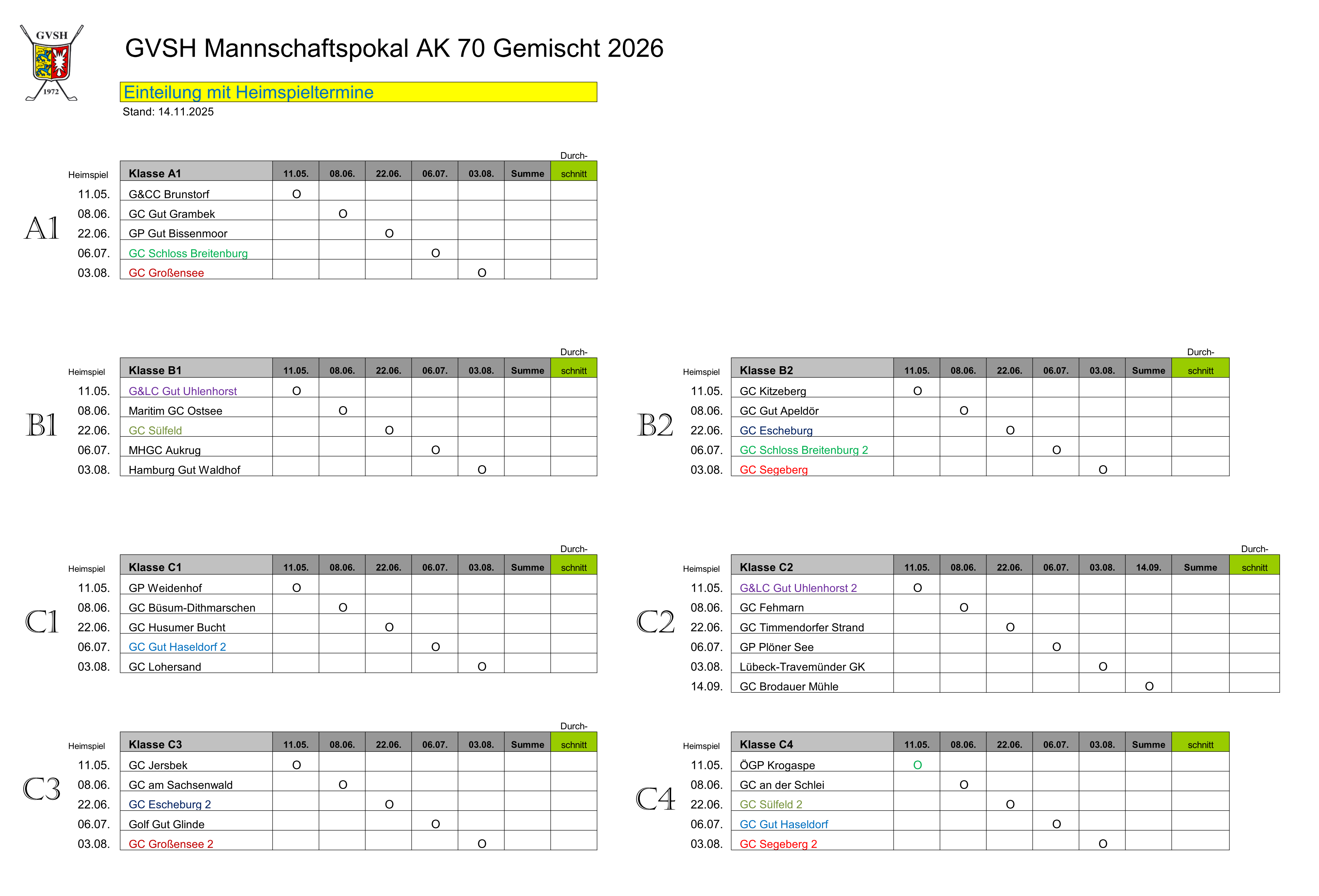 GVSH Mannschaftspokal AK 70 Gemischt 2026