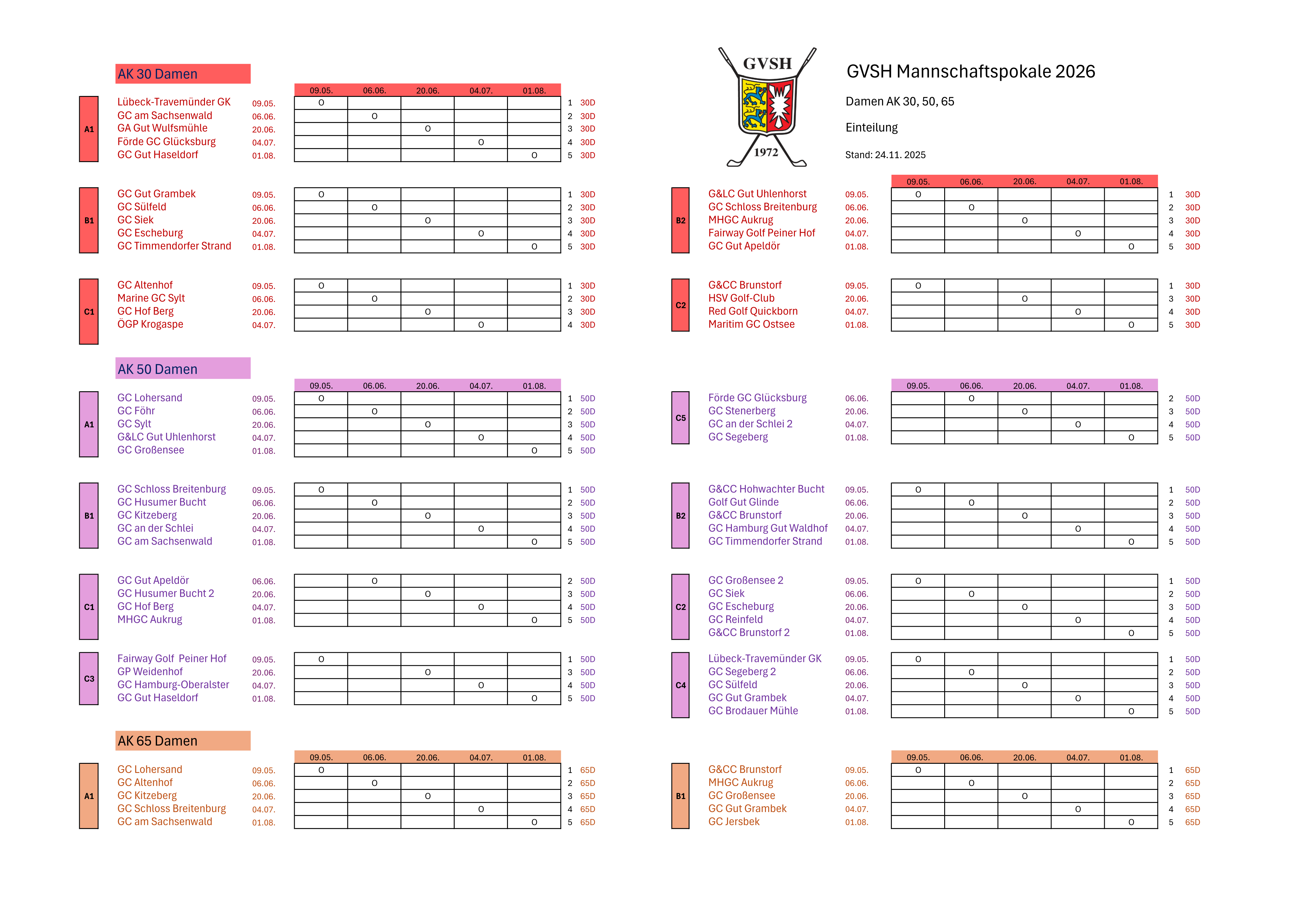 GVSH Mannschaftspokal AK 65 Damen 2026
