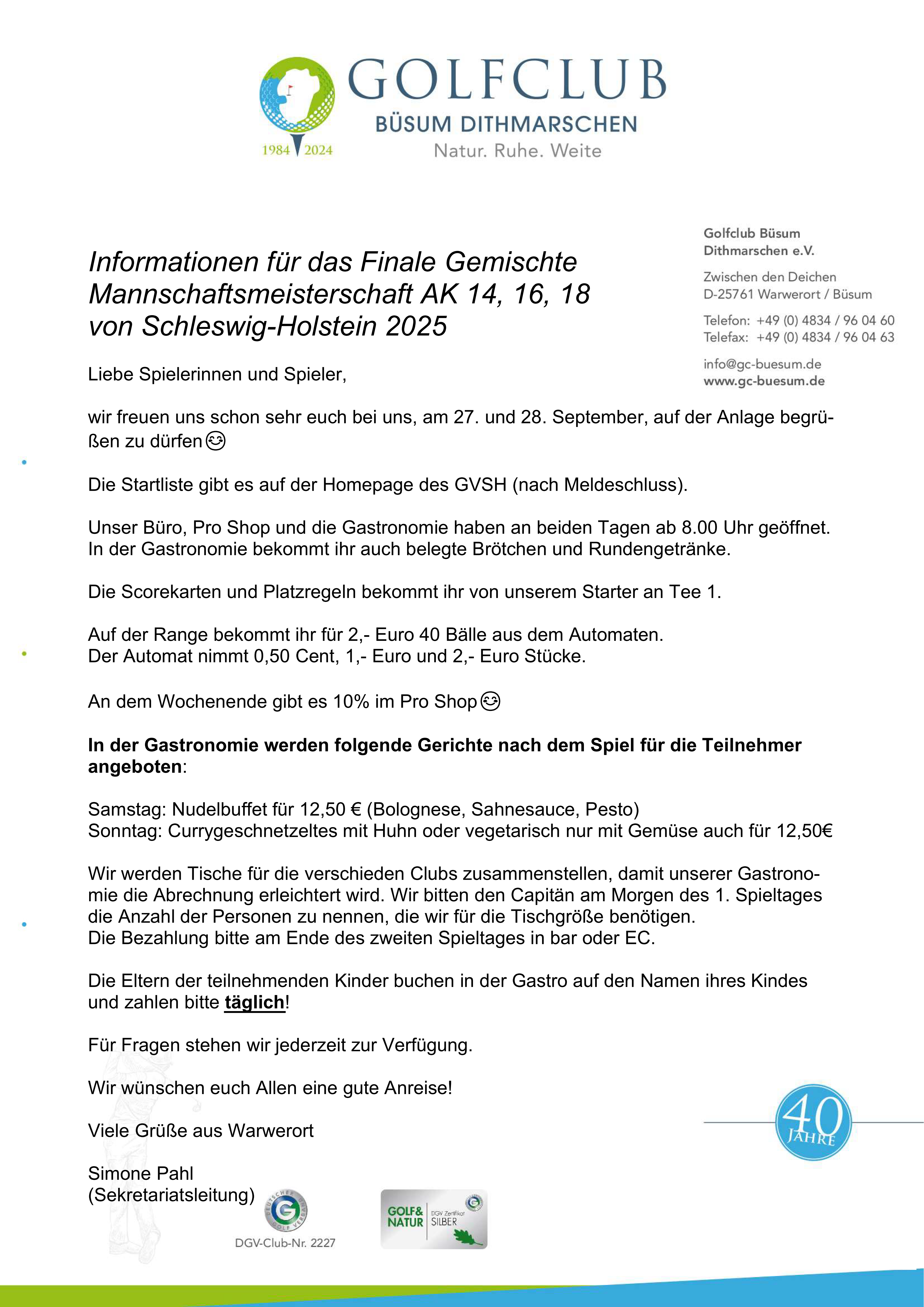 Aktualisiert: Informationsschreiben des GC Büsum-Dithmarschen an die Spieler