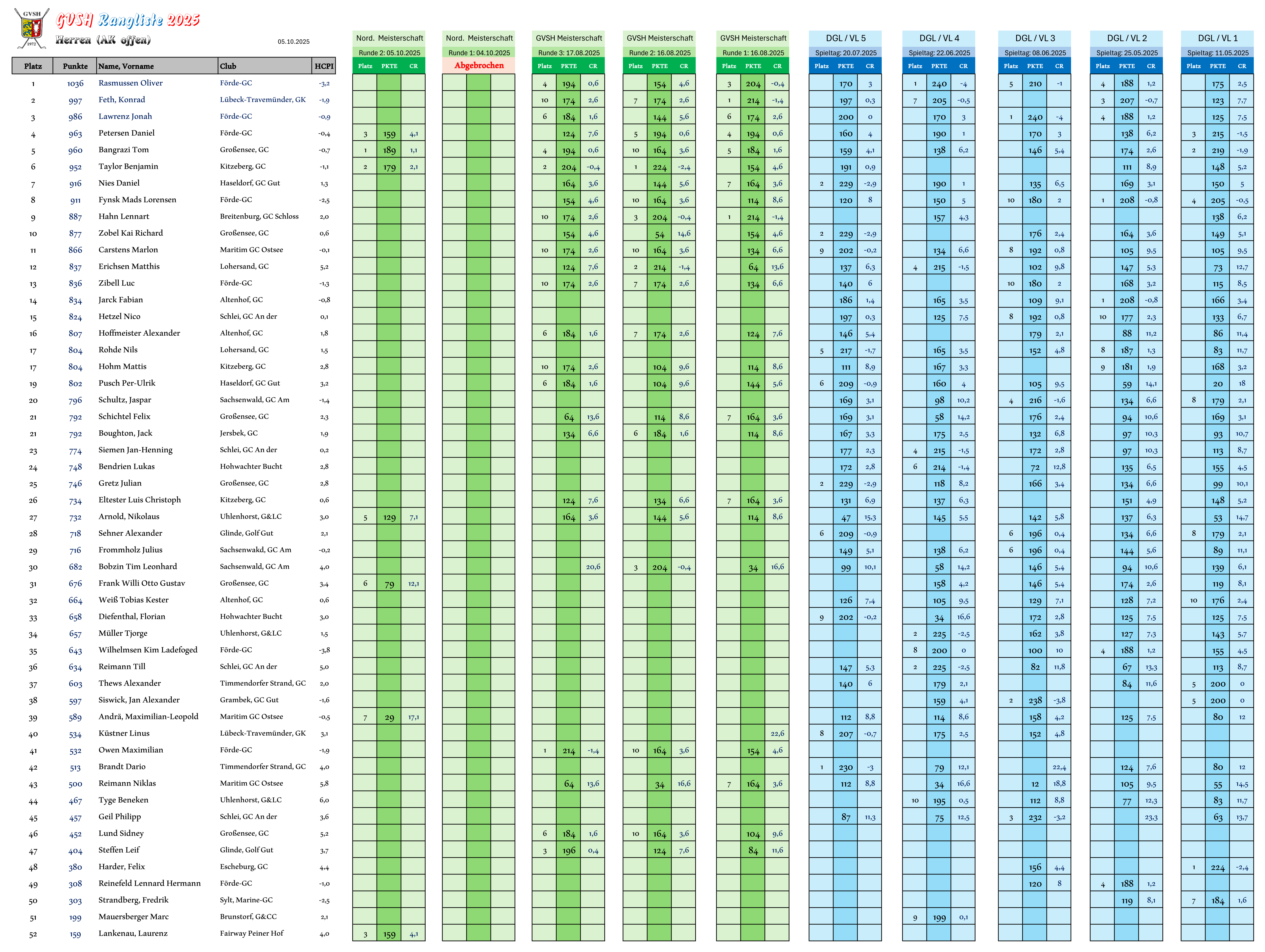 Ranglistenergebnisse der DGL und Verbandsliga Region Nord 2025